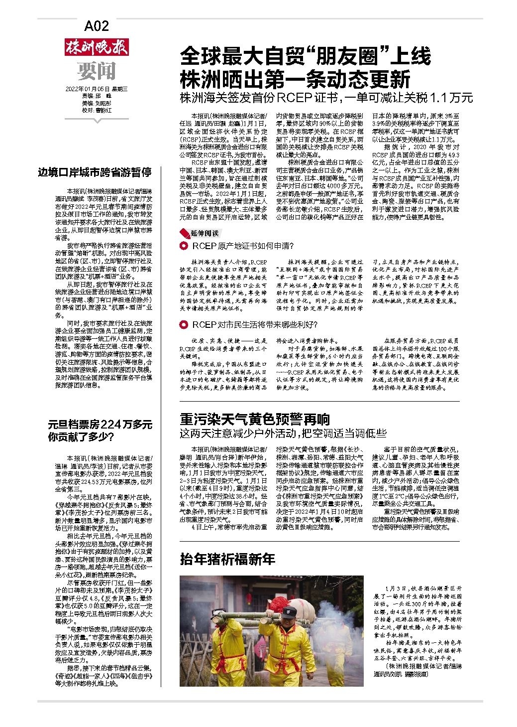 全球最大自贸“朋友圈”上线 株洲晒出第一条动态更新