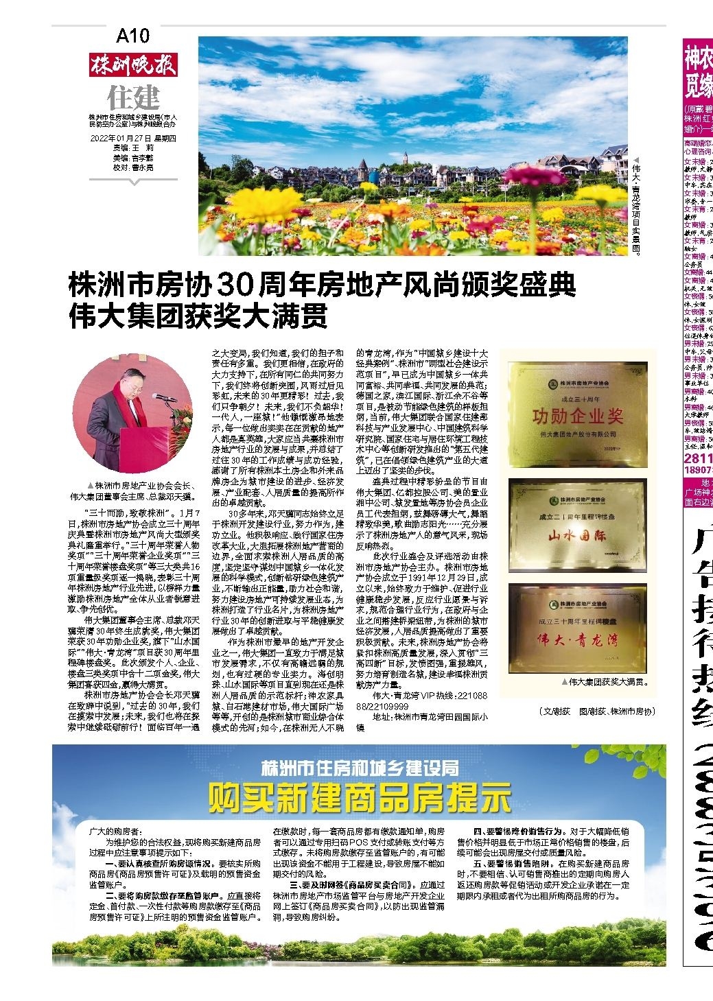 株洲市房协30周年房地产风尚颁奖盛典 伟大集团获奖大满贯