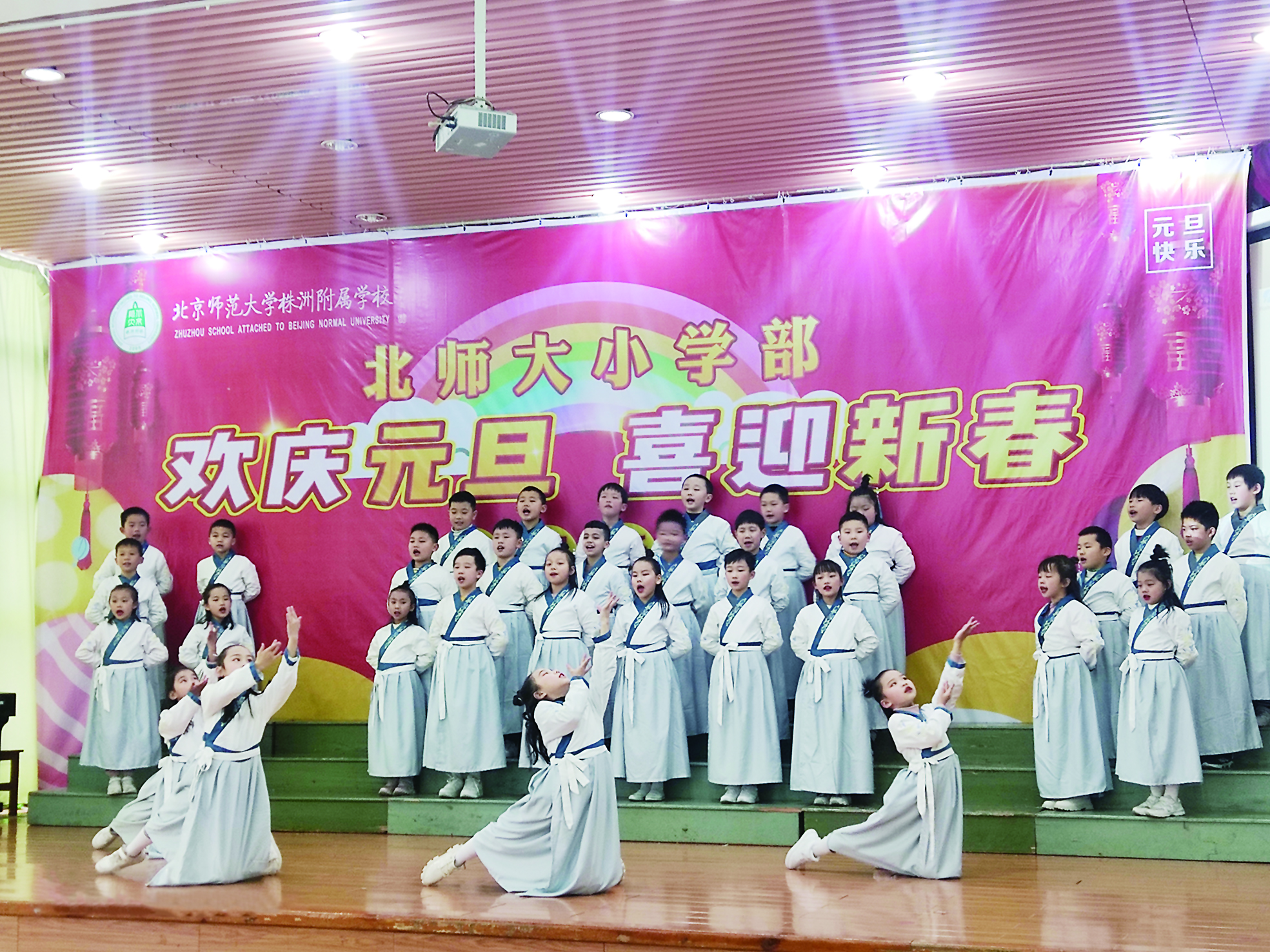 白驹过隙,新年伊始,我们要对过去的300多个日日夜夜进行回顾与评估:看看我们付出了多少,看看孩子们收获了多少、提高了多少、成长了多少。于是,“欢庆元旦 喜迎新春”系列汇报活动,如报春花一般,在北京师范大学株洲附属学校的校园里次第绽放。