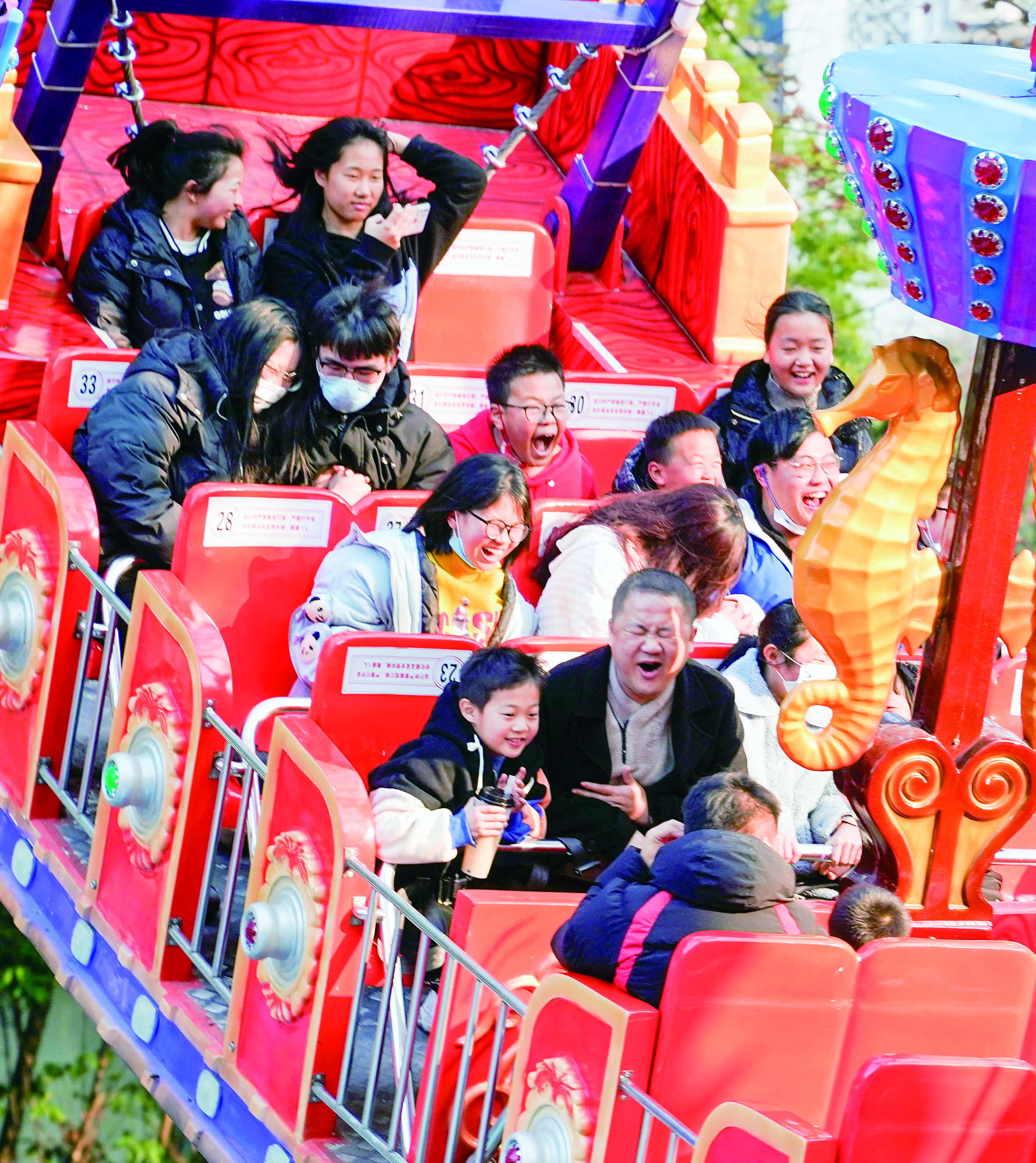 1月2日,告别了前段时间的阴雨天气,阳光灿烂,很多市民带着孩子来到神农公园游乐场,欢度美好假期。