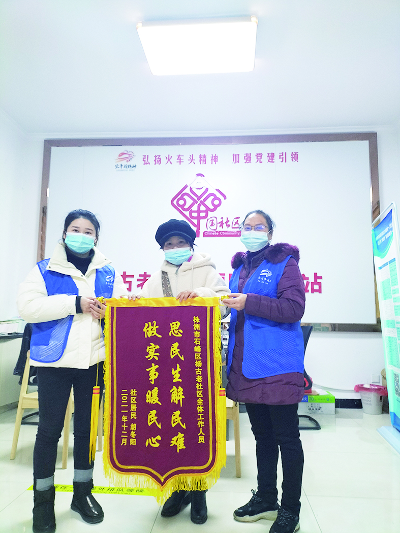 本报讯(株洲晚报融媒体记者/周蒿 通讯员/郭青云)“感谢社区为民办实事,解决我们群众所急所难,让我儿子在生命最后一程中,感受到了政府、社区的浓浓关怀与关爱。”近日,石峰区响石岭街道居民胡阿姨将一面印有“思民生解民难,做实事暖民心”的锦旗,送到杨古老社区。