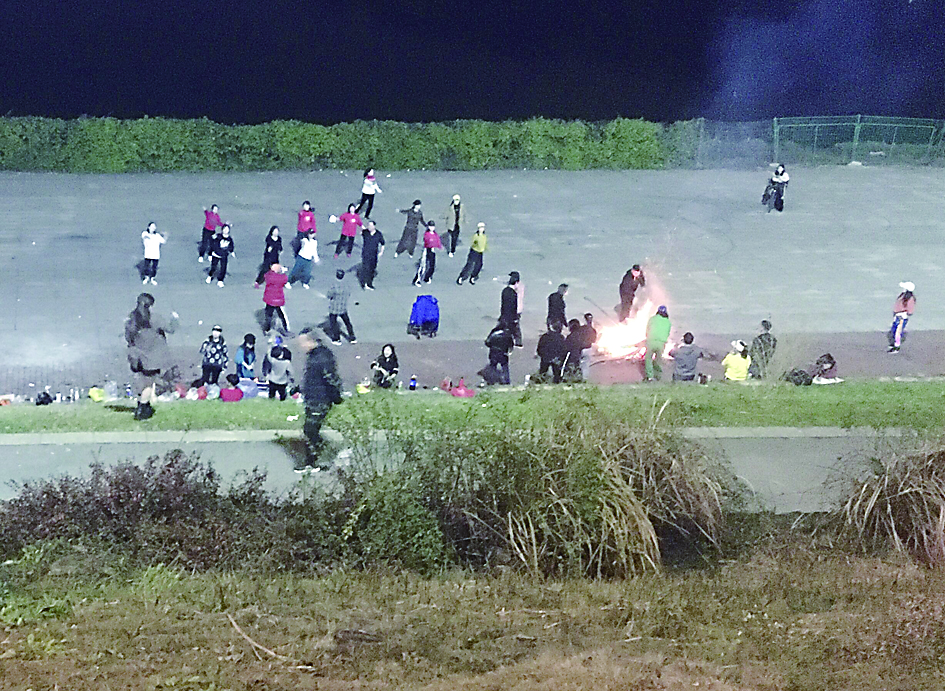 本报提醒,户外玩火有危险;篝火现象增加了环卫工的工作量;风光带树木茂盛,点篝火存在火灾隐患,易对风光带的设施造成损坏,留下的焚烧痕迹难清理,影响市容市貌;希望有关部门加强监管。