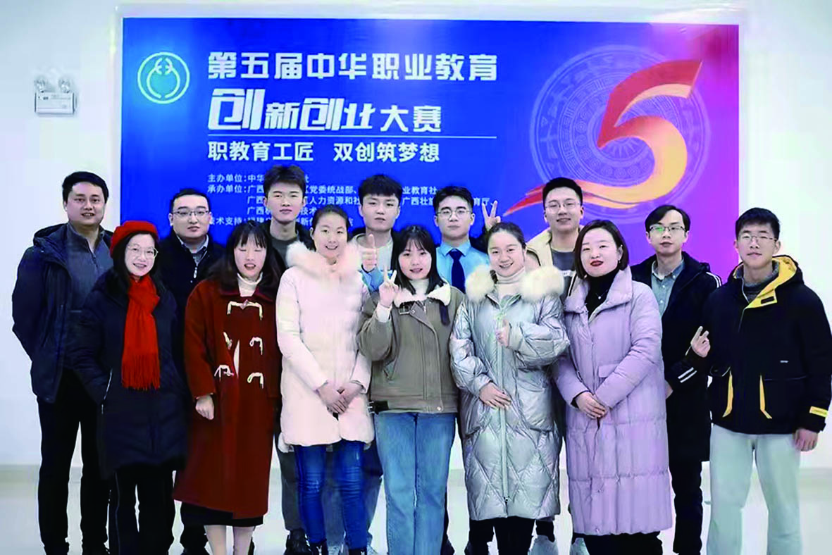 ▲湖南汽车工程职业学院获第五届中华职业教育创新创业大赛一等奖团队成员合影。通讯员供图