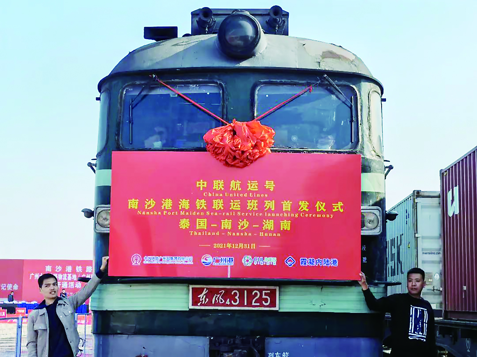 ▲湘粤非铁海联运通道首列进口方向列车抵达株洲。 通讯员供图