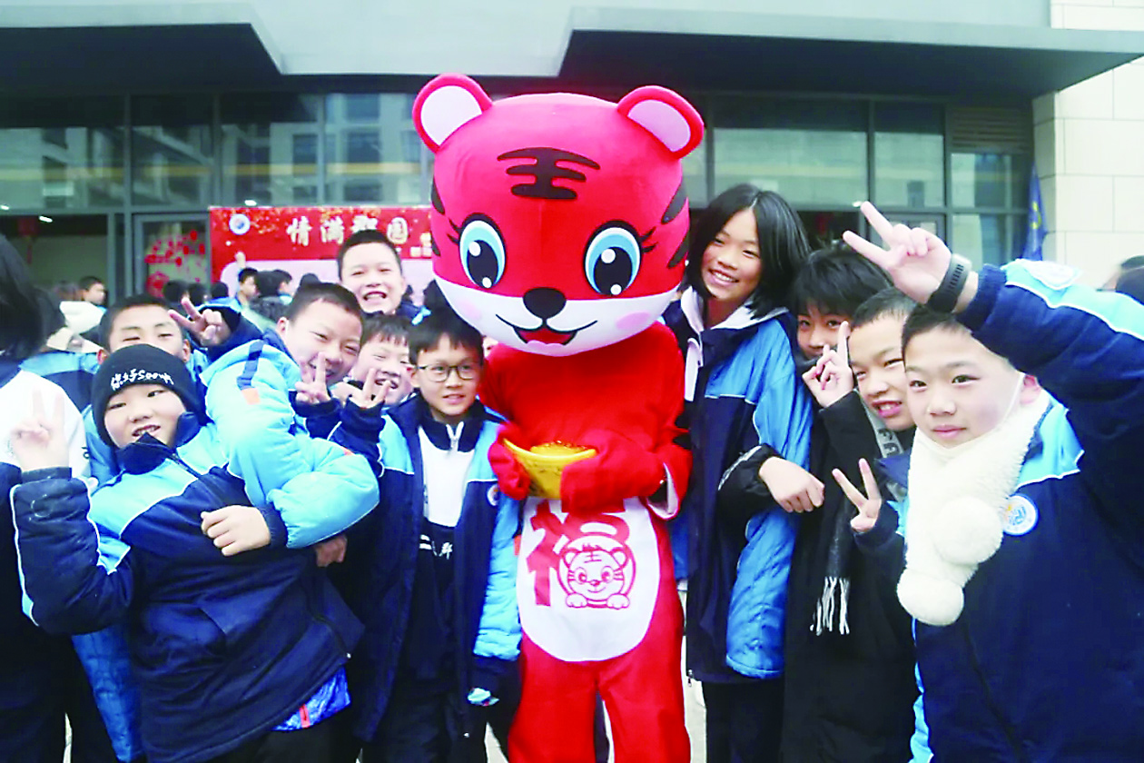 本报讯(通讯员/王东)近日,长郡云龙实验学校校园里出现了神奇的一幕:食堂门口出现了两只手里拿着许多美食和公仔的“老虎”。原来,为了弘扬校园“食育”文化,学校精心举办了迎新年送温暖活动,两只老虎是学校食堂的厨师们扮演的。