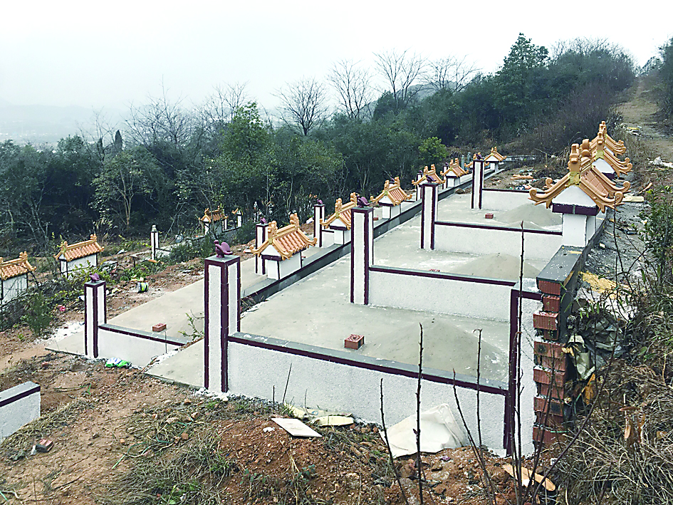 ▲山上已被硬化的墓地。 记者/刘平 摄