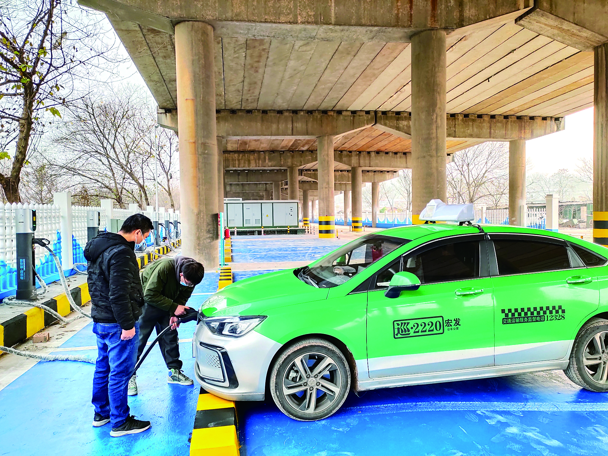 ▲1月11日,出租车司机在充电站给车充电。受访者供图