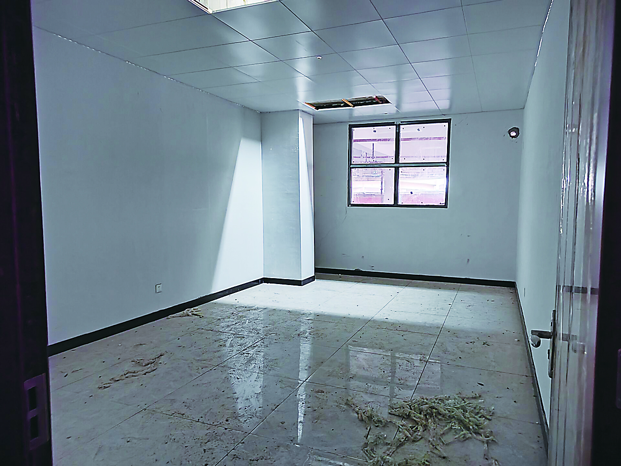 磐龙世纪城物业服务中心负责人承认,小区地下车库此处建筑用于员工住宿、用餐。他还表示,该行为属开发商所为,物业公司无权干涉。