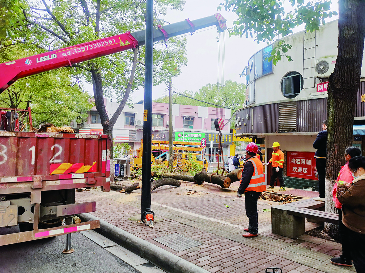 昨日下午,天元区园林工作人员已赶往现场将大树切割运走。