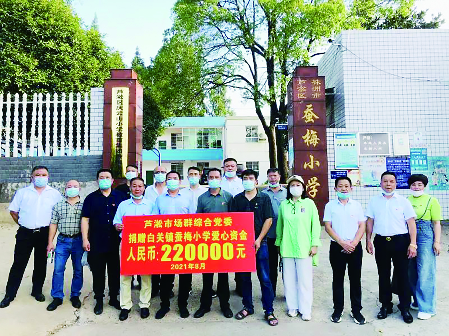 近年来,芦淞市场群综合党委引导市场群党组织和党员在抗灾、扶贫、助学和助残中贡献力量、奉献爱心,先后举办“‘大手牵小手、开心过六一’校服义捐”“党员助力疫情防控”“‘聚焦乡村教育,关爱学生成长’爱心捐赠”等公益活动20余场,累计捐款捐物达200多万元。