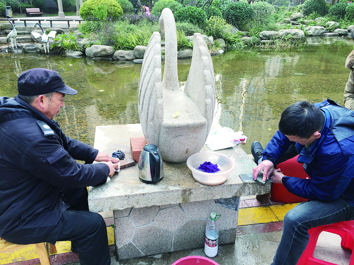理发、磨菜刀、修家电、洗地垫……1月13日,天元区华晨山水印象小区,电工、保安、园林工人和保洁人员等物业人员在小区休闲广场干起了与平时工作不相干的事,深受小区业主欢迎。