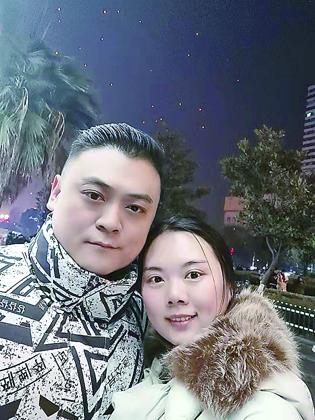 ▲2021年12月31日晚,龚倩雯和丈夫赶在跨年前忙完工作,在满夜空的许愿孔明灯下,依偎着互道新年快乐。 受访者供图