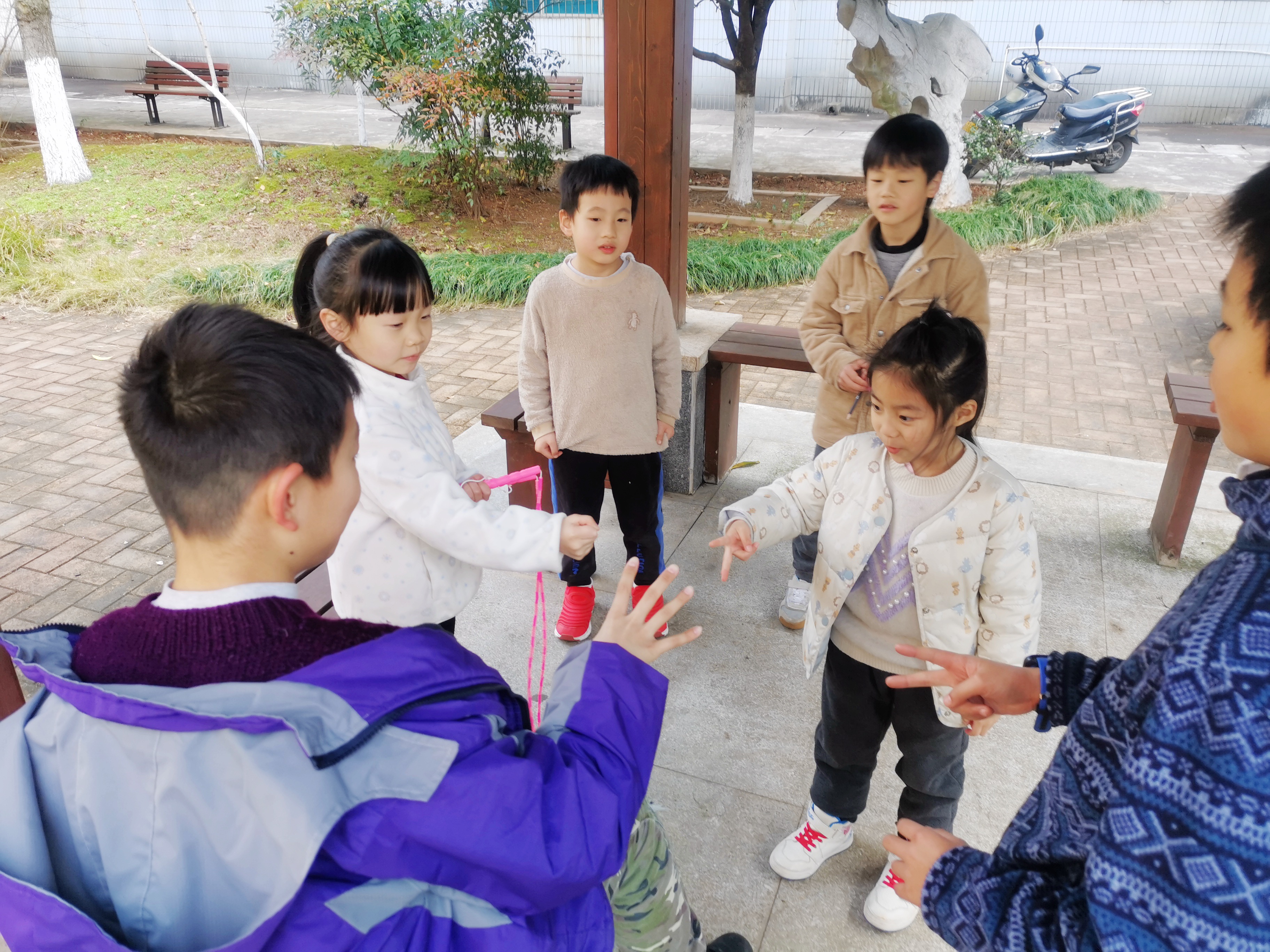 ▲昨日,天元区一小区内,不少放寒假的孩子在一起游戏。记者/戴凛 摄