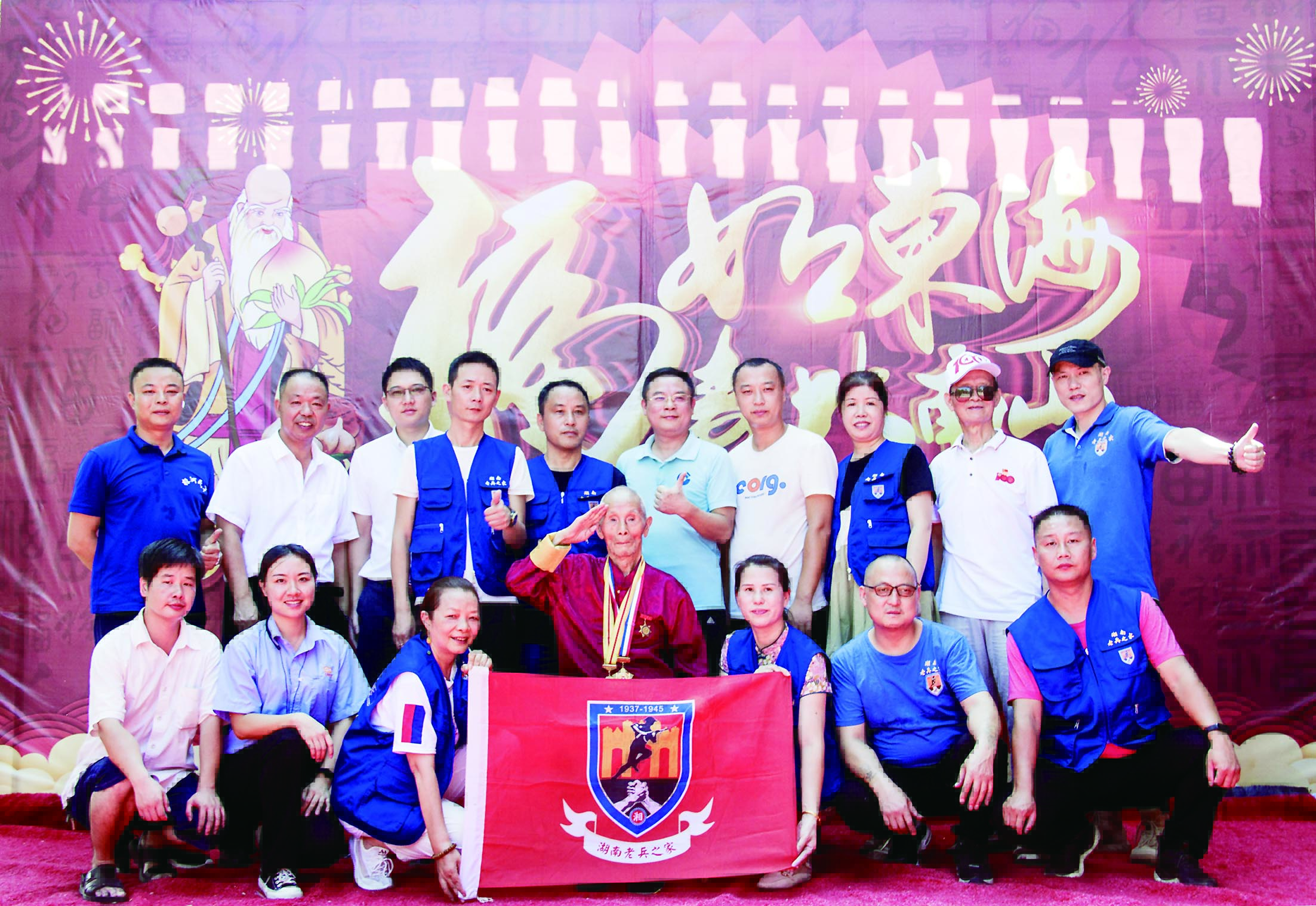 ▲湖南老兵之家志愿者陪蔡雄奇(中)过百岁生日。 通讯员供图