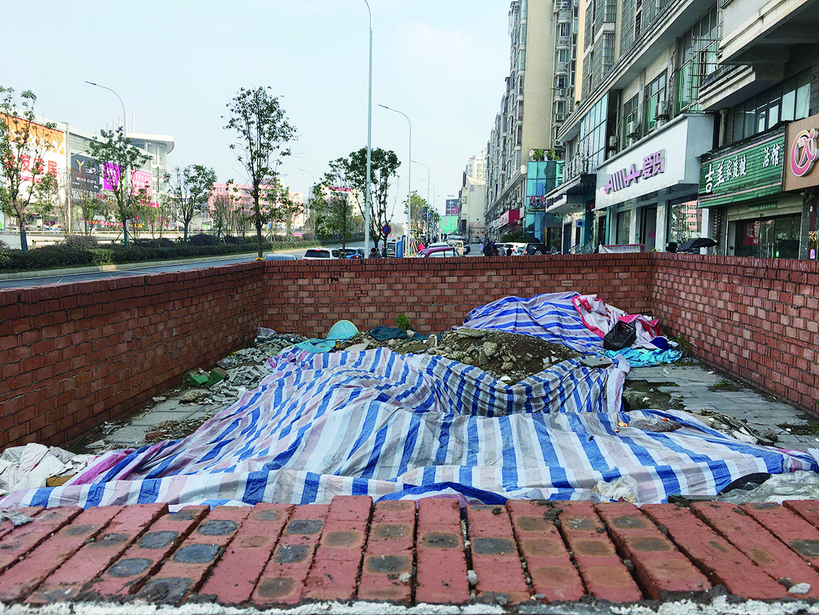 附近居民反映,该处人行道上大片区域被围墙合围已超过一年时间,未见项目相关信息,也未见施工人员动工。记者在现场看到,该处施工围墙有两米高,围墙内有开挖迹象,堆积大量建筑垃圾及生活垃圾,上面遮盖着塑料布。临街商户告诉记者,希望被占用的人行道早日恢复畅通,尽快清除“卫生死角”。