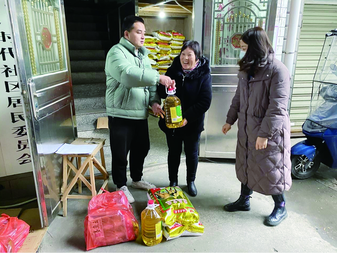 ▲石峰区送年货“大礼包”,温暖居民心。 受访者供图