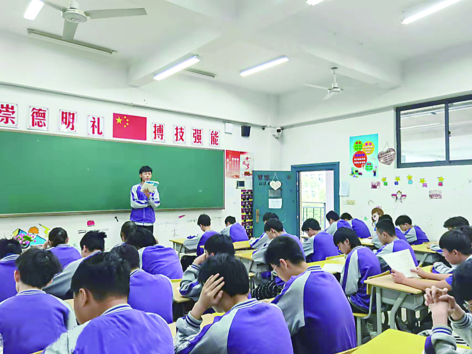 ◀2021年9月16日清晨,黄美林老师走进教室,看到学生们在自觉认真地晨读。 (受访者供图)