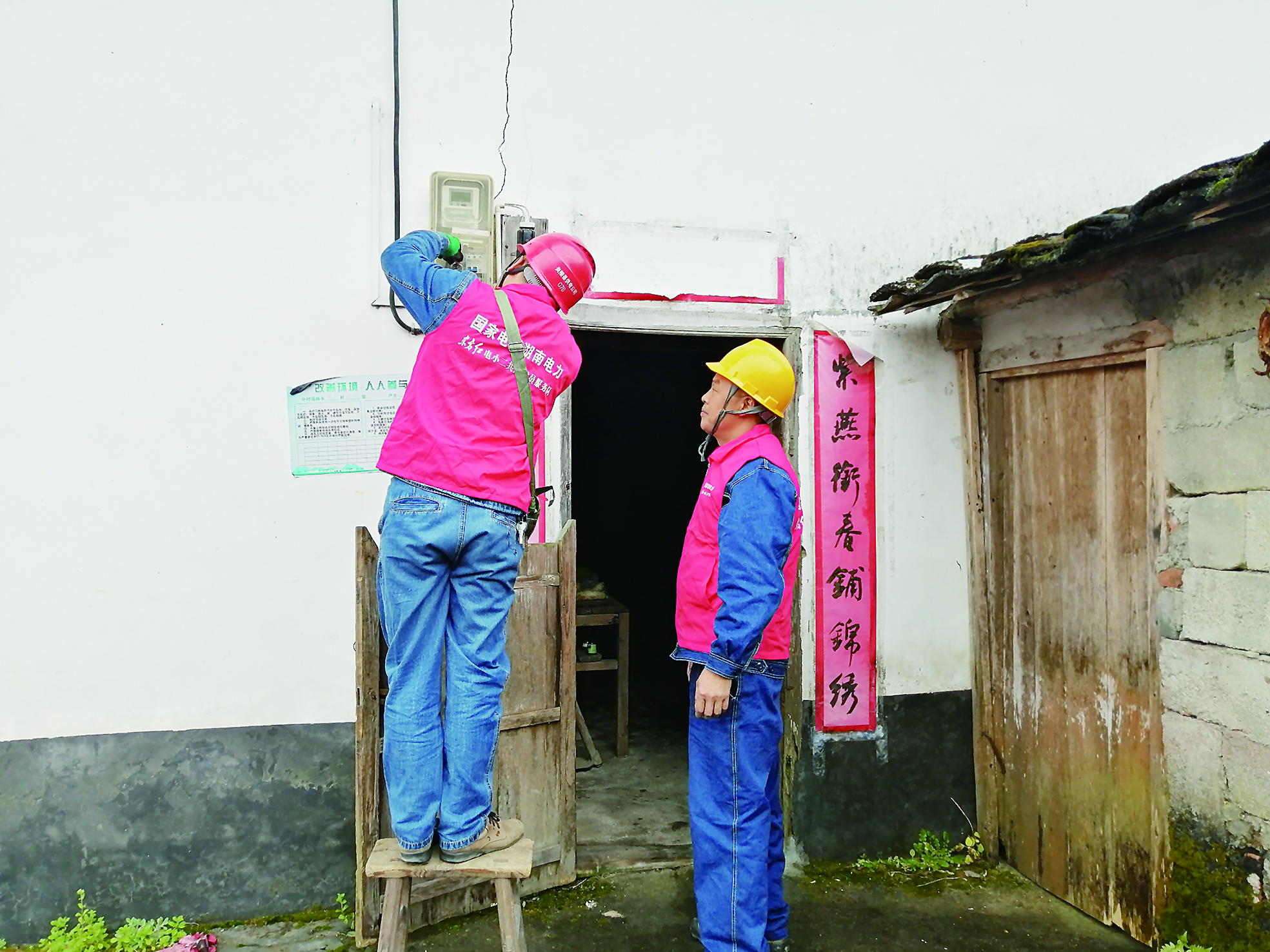 ▲工作人员为返乡人员上门服务,消除用电隐患。 通讯员供图