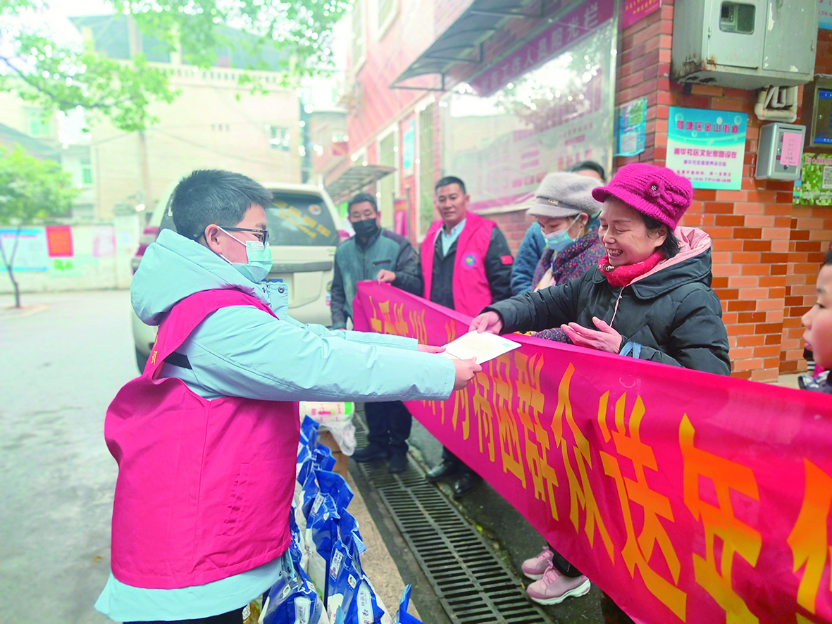 本报讯(株洲晚报融媒体记者/成姣兰)21日,来自株洲市川渝商会13位会员的20份年货,在志愿者的帮助下,被送到荷塘区荷叶塘社区和湘华社区20户特困群众家中。