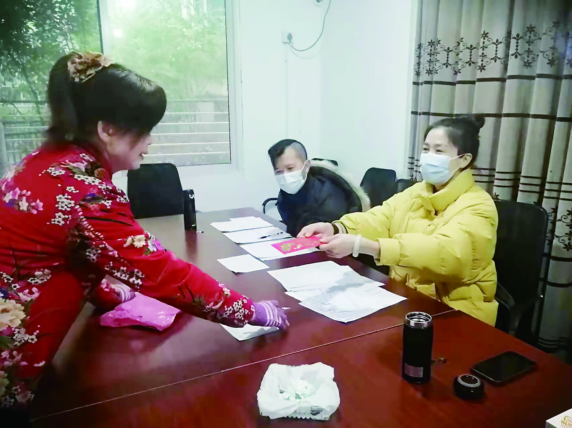 登记、核实、递上红包……业委会主任楼芷汐忙得不亦乐乎。“过年好!”“新年好,祝您身体健康!”业主们满心欢喜地领着红包,互相问候,其乐融融。
