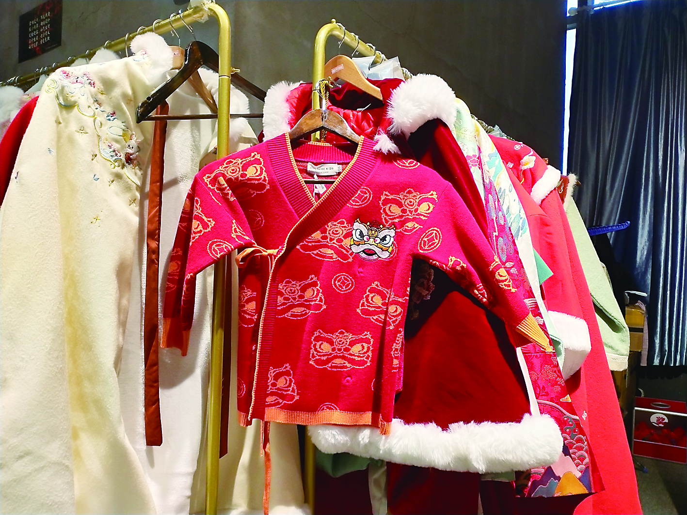 ◀汉亭序的国风文化体验馆售卖的虎元素儿童服饰。 记者/廖智勇 摄