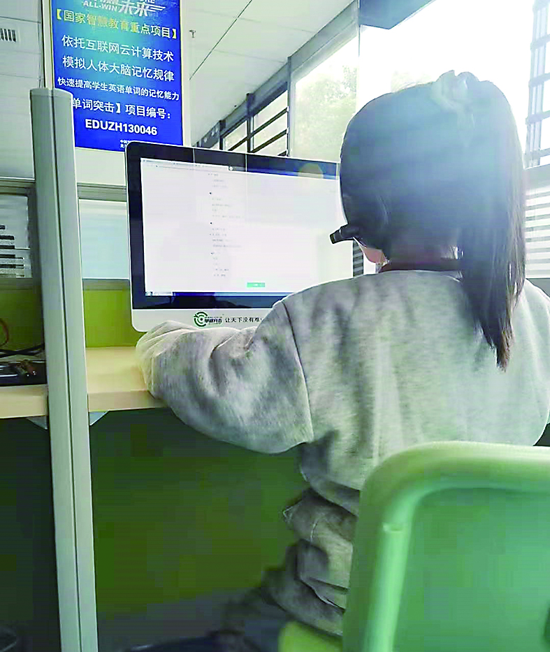 ◀孩子进行线上英语培训。 受访者供图