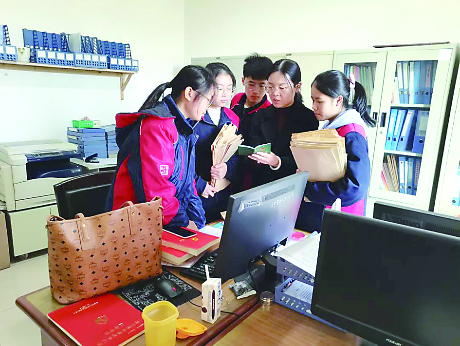 ▲同学们学习整理团员档案。 通讯员供图