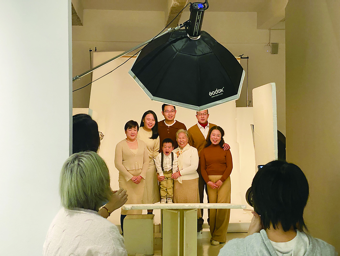 ▲1月26日,市民在泰山路某快时尚照相馆拍全家福。受访者供图