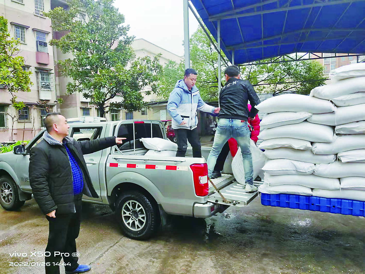 ▲应急部门工作人员在调配救灾物资。通讯员供图