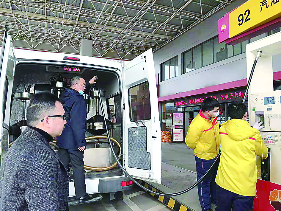 ▲执法人员联合市计量所开展成品油计量检查。 通讯员供图