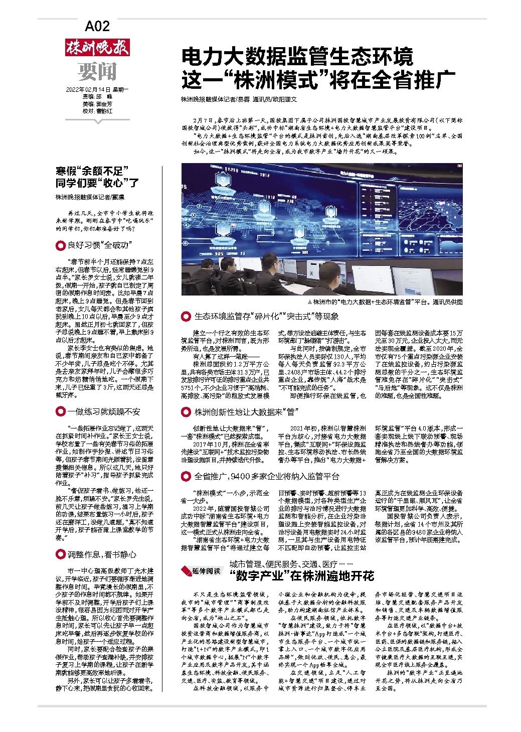 电力大数据监管生态环境这一“株洲模式”将在全省推广