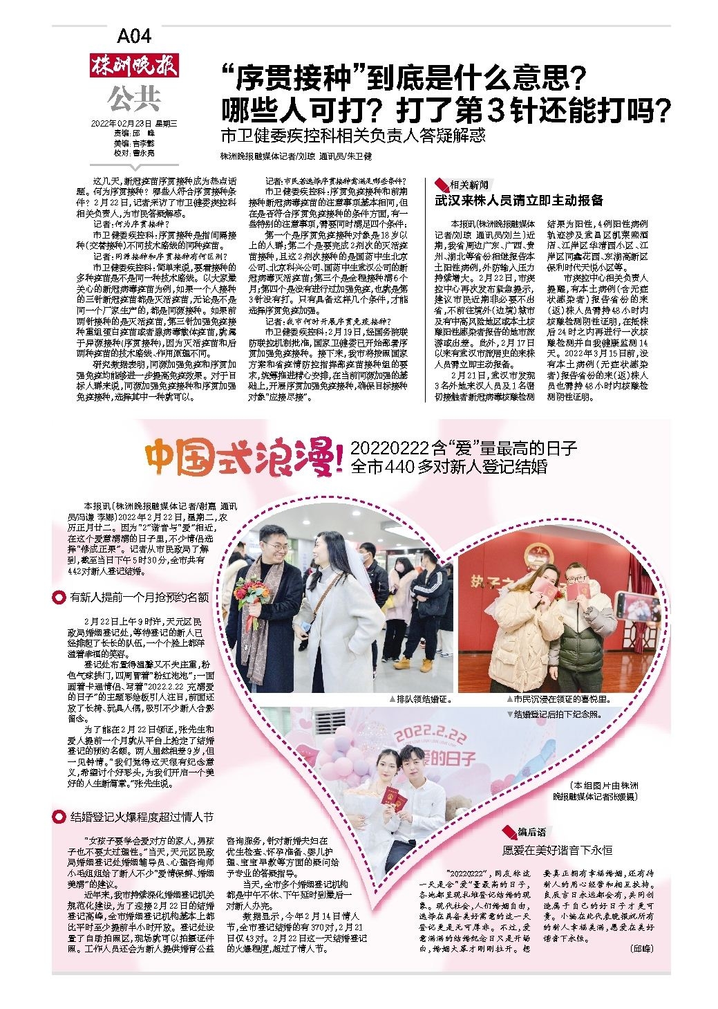 20220222含“爱”量最高的日子 全市440多对新人登记结婚
