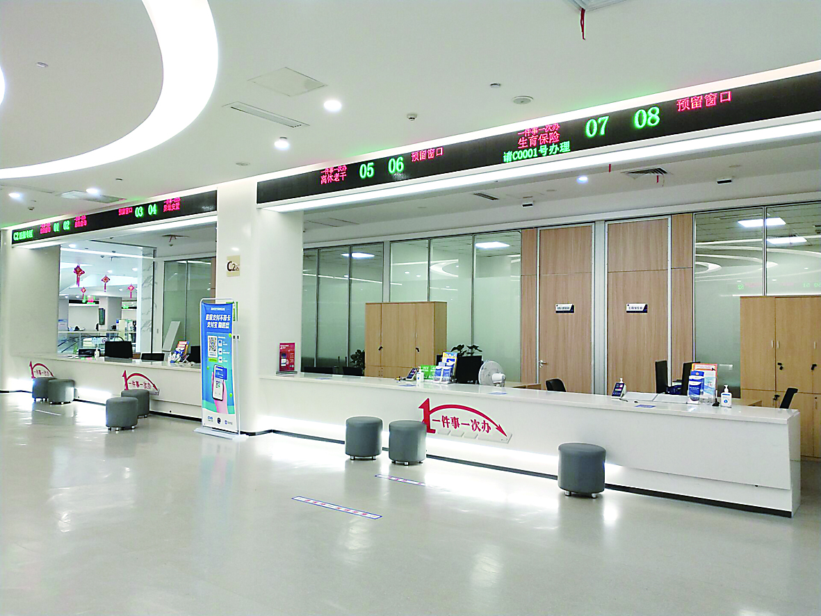 • ▶昨日上午11时44分,市民中心人社、医保办理区1至8号窗口空无一人。 记者/廖智勇 摄