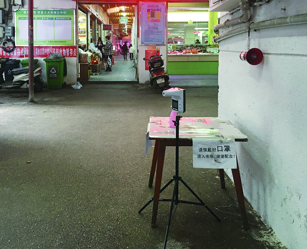 2月8日,石峰区湘天桥市场在休市8天后正式开市。市场负责人刘文卓介绍,市场有10处出入口,每天人流量超过6000人次。春节前,10处出入口均安装了具有测体温、人脸识别、扫码等功能的设备,安排人员值守,并专门雇请人员从事疫情防控工作,严把市场疫情防控“出入关”。