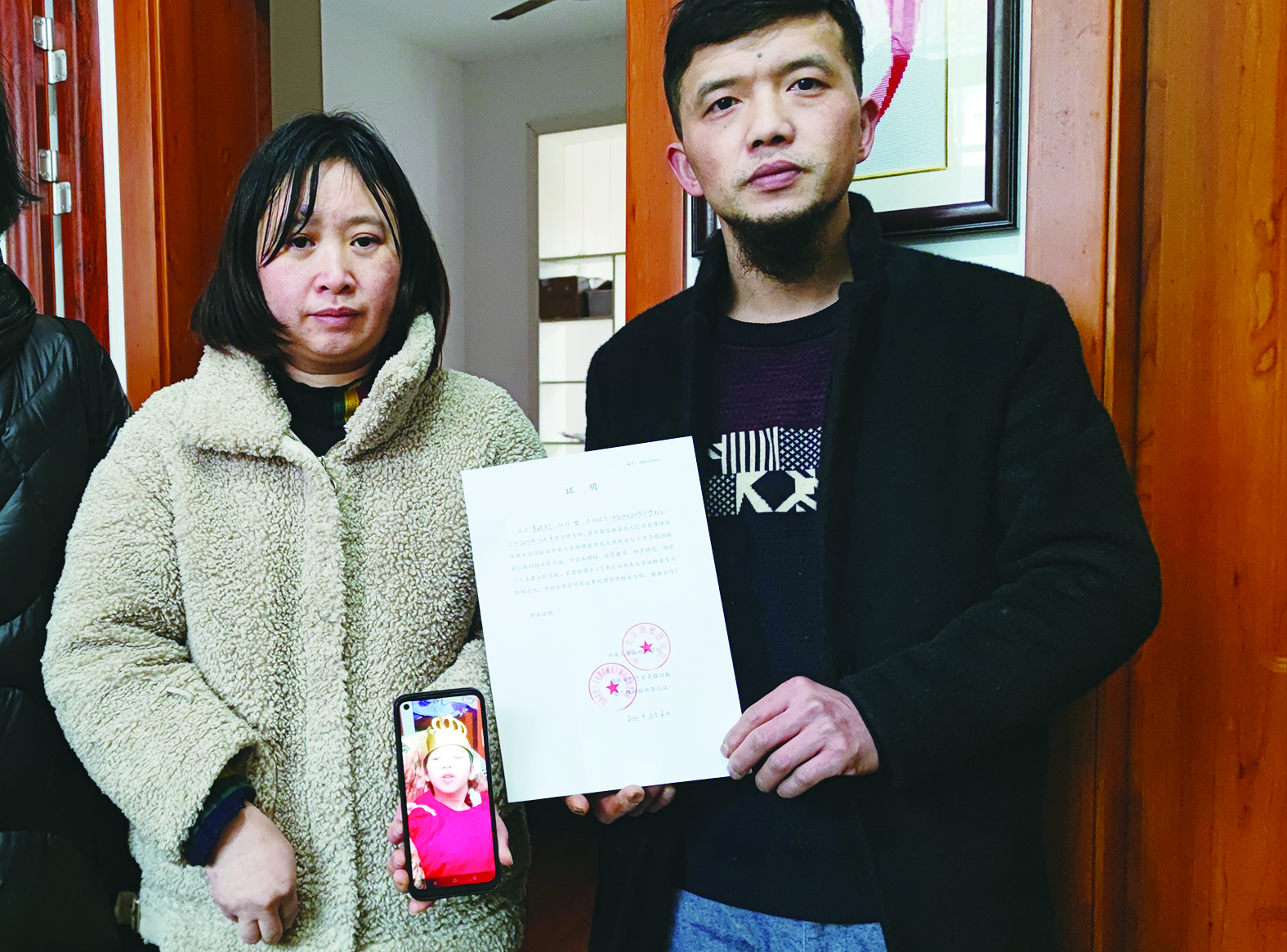 ▲曾美娟、黄波拿着女儿的眼角膜和遗体无偿捐献证明。记者/杨凌凌 摄