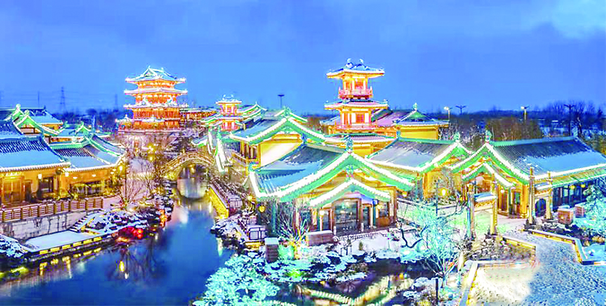 2月7日,中国南方多地迎来大雪,漫天雪花纷纷扬扬。在南京城南部的金陵小城景区,立春后的首场大雪飘落于亭台楼阁之上,扮靓古韵建筑,如诗如画。身着古装的游客脚踩白雪,穿梭于古韵建筑之中拍照“打卡”。 (据中新社)