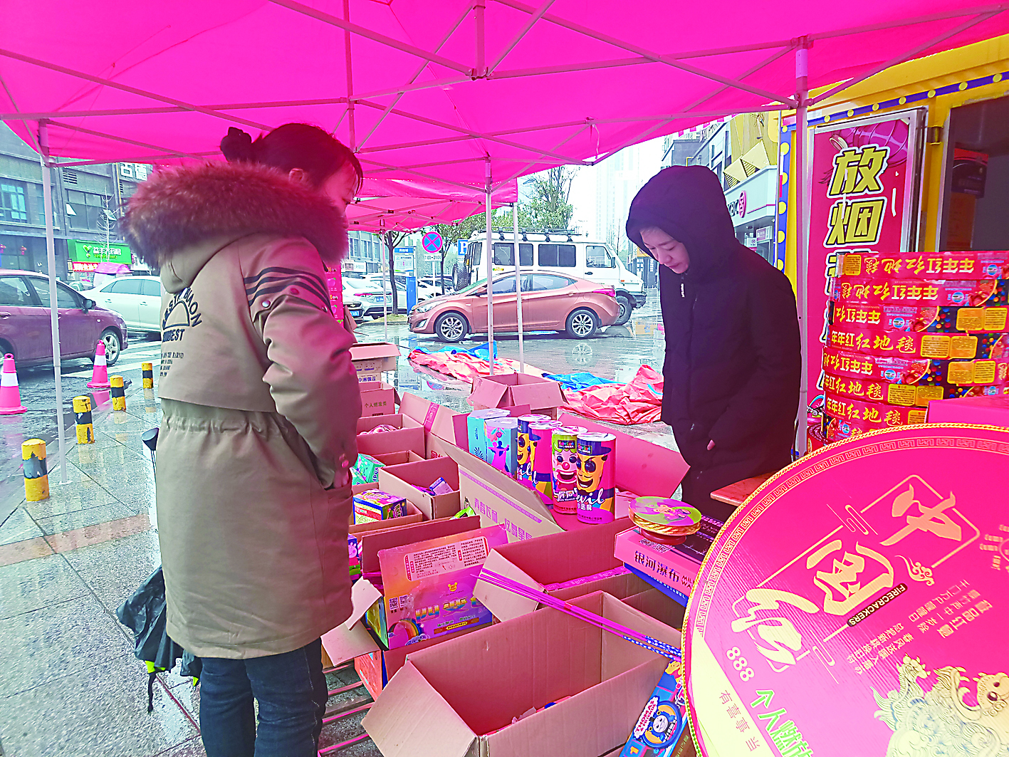 大年初七,虽然天下着雨,天元区湖景名城烟花鞭炮销售临时点依旧不缺顾客。从1月28日设点开始,站点工作人员苏女士就进入连轴转状态,直到这几日才稍有缓和。