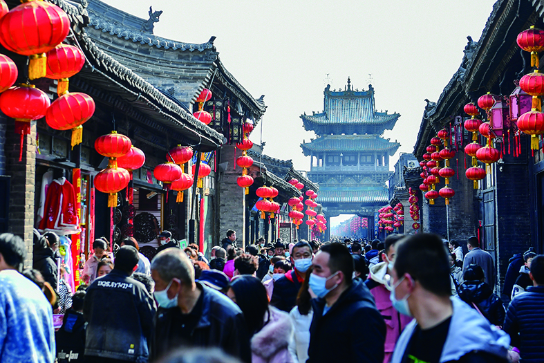 春节期间,山西省晋中市平遥古城举办2022“我们的节日·春节——平遥中国年”活动,吸引各地游客前来参观。