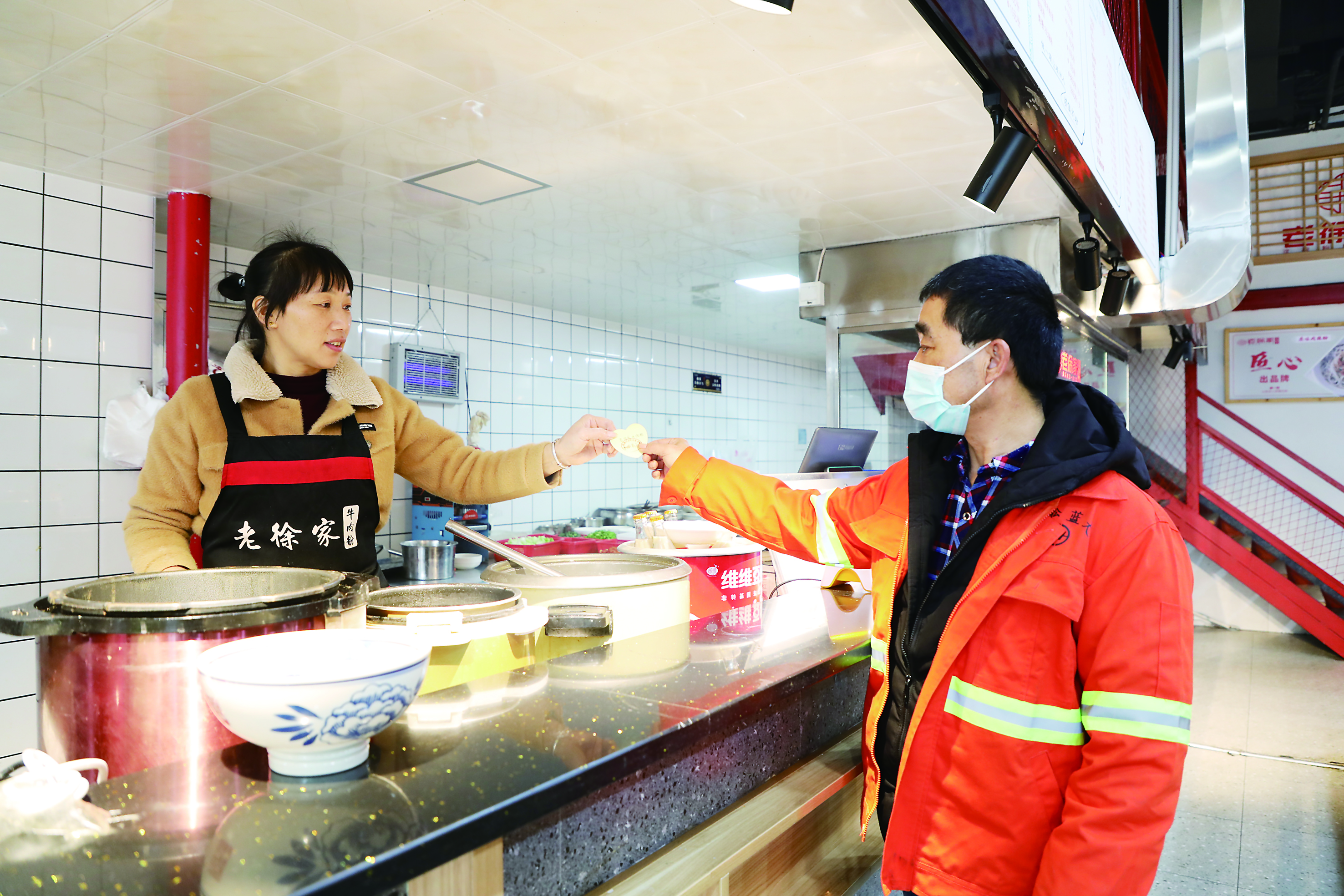 “墙上的爱心面,非常好。春节后小区快递多,我送快递中午回家吃饭时间紧,来应个急。”2月9日中午,在锦绣江山小区附近的某面馆,正在享用免费三鲜面的快递员小陈对记者说,“这种感觉很温暖。”