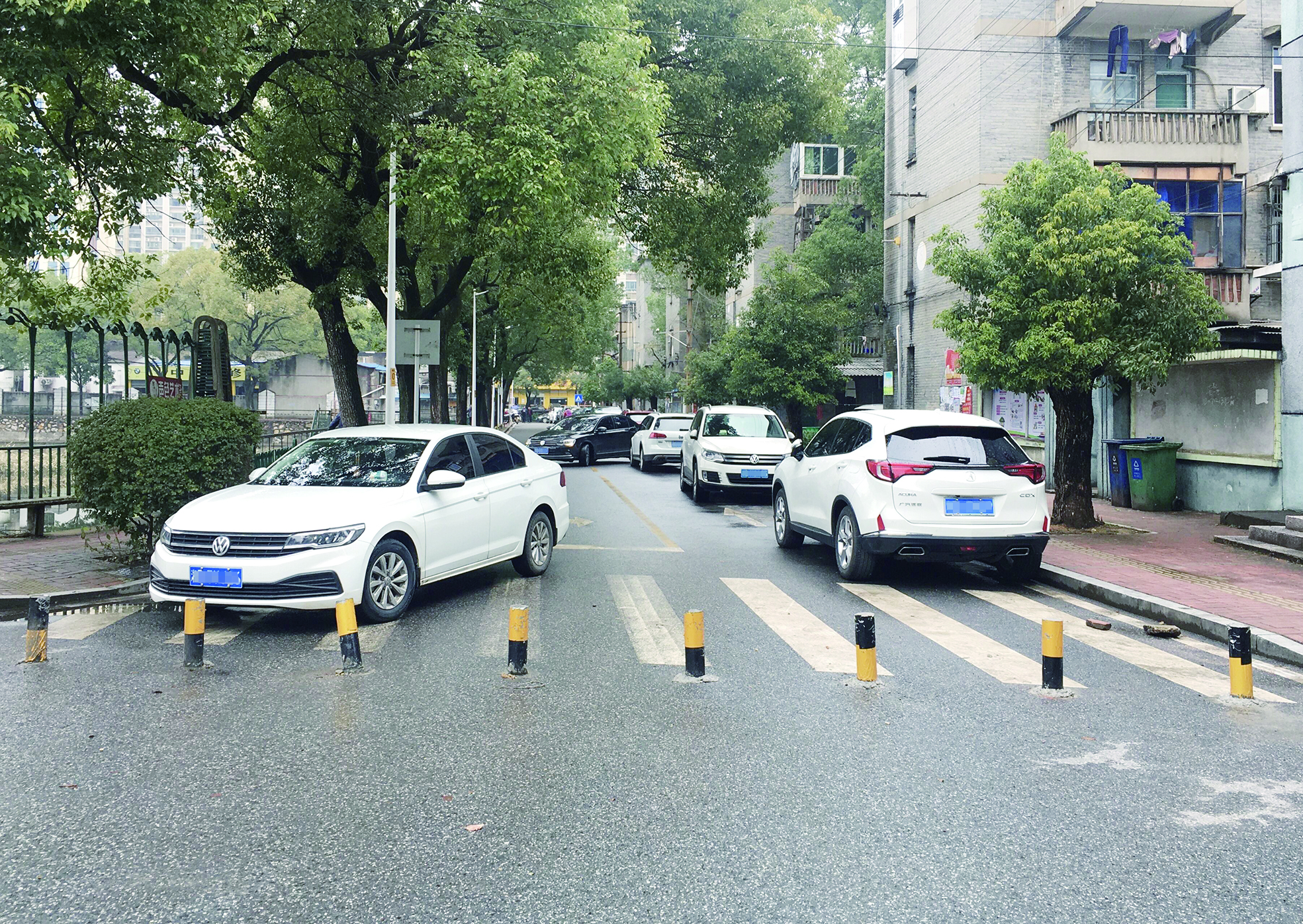 “小区道路怎么能这样设置隔离桩!”胡先生担心,一旦小区内发生紧急情况,消防车、救护车进不了小区,怎么办?