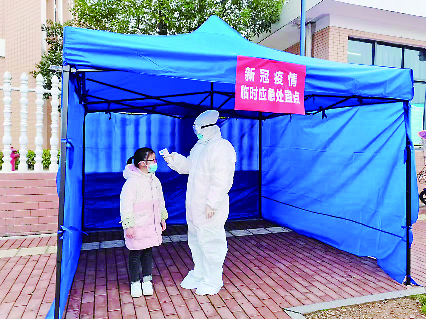 昨日上午,何家坳枫溪学校则在枫溪街道社区卫生服务中心的指导下开展了疫情防控应急演练。演练开始前,学校根据预设路线,明确人员分工、梳理演练流程,同时强调了各环节在发生突发情况时的应急处理办法。演练中分别模拟了校门口、教室两处场景出现紧急情况时的疫情处理措施。