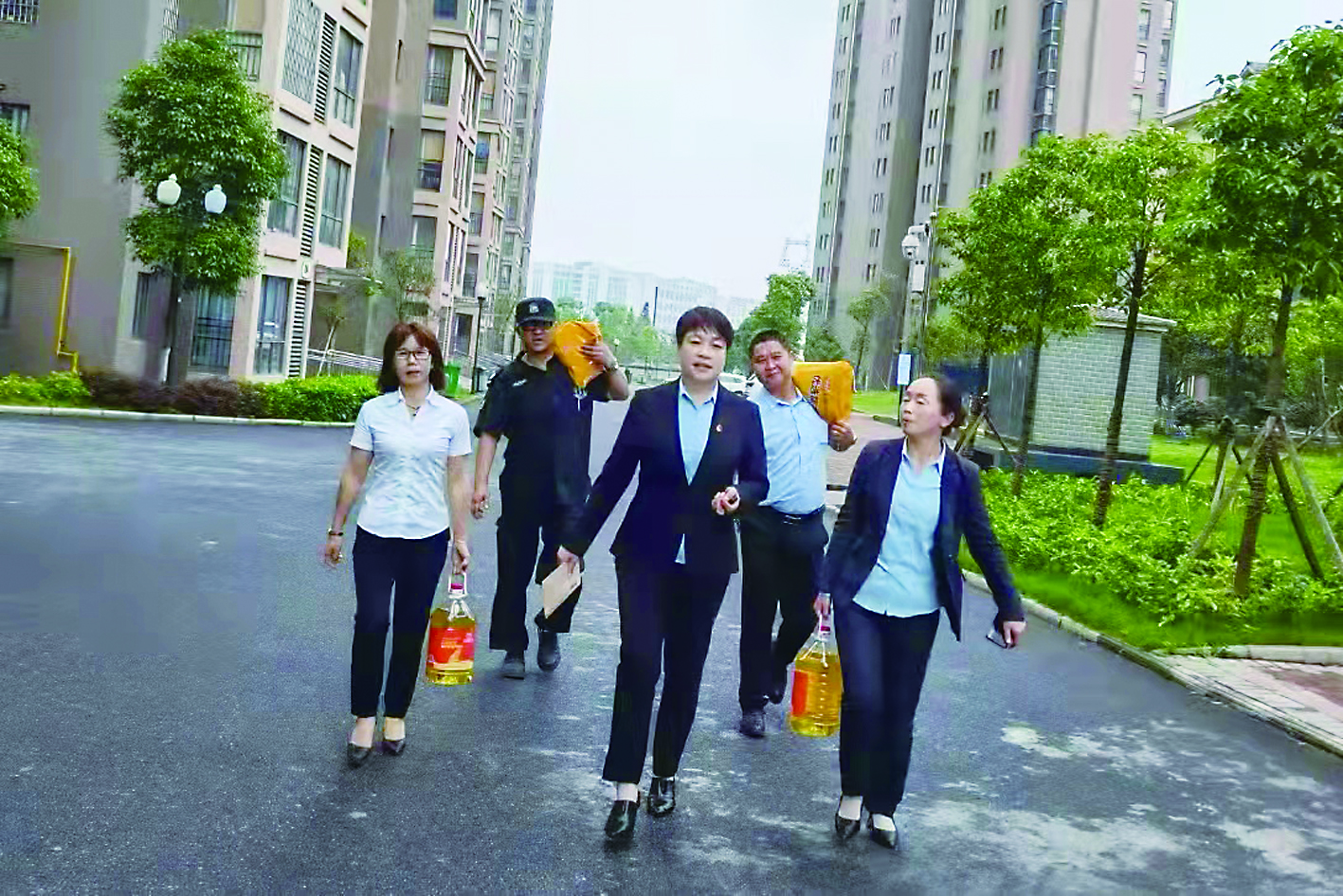 ▲瑞丰物业总经理龚檐玲(左三)带队慰问服务对象。受访者/供图