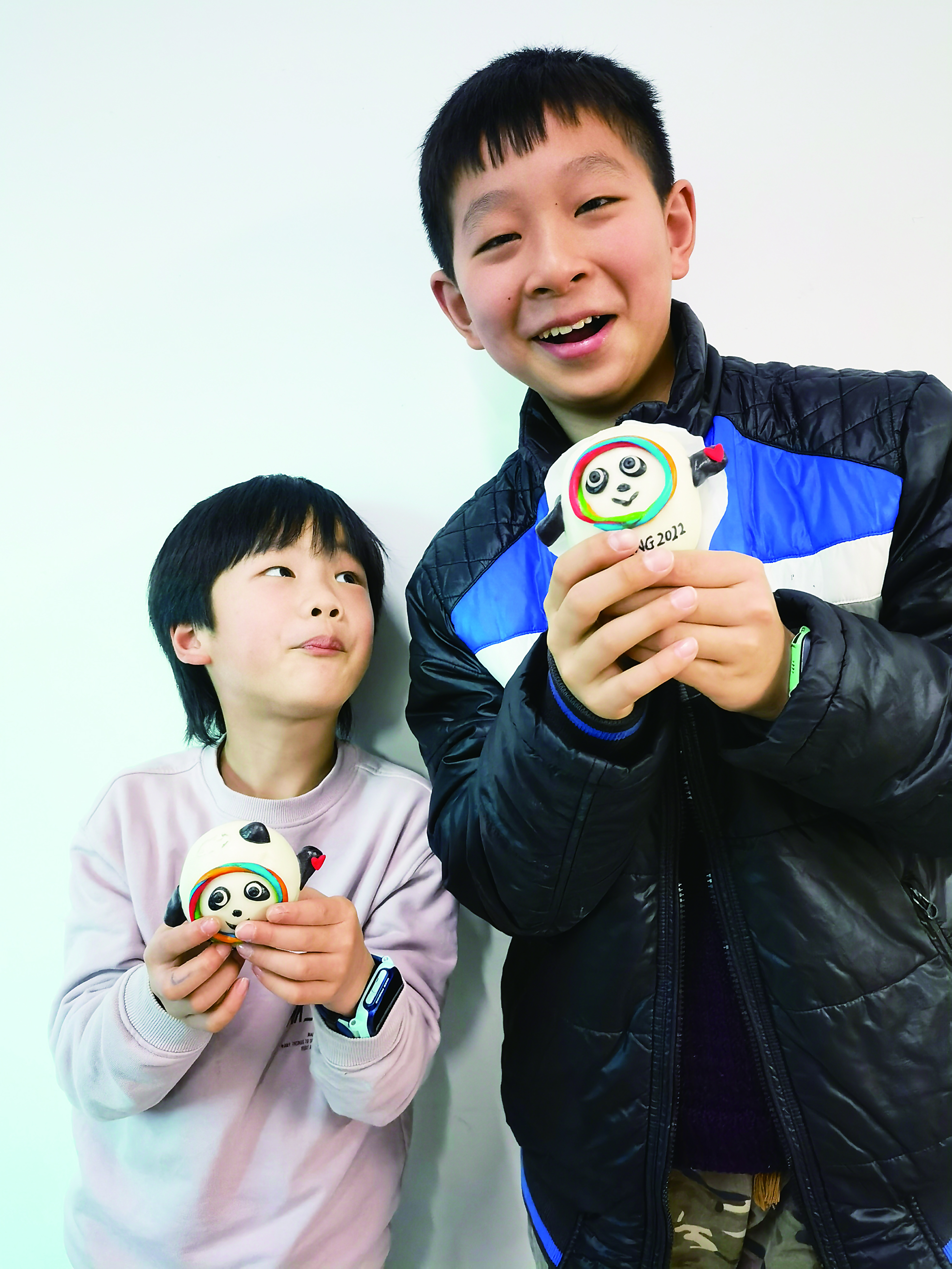 ▲小朋友开心地分享冰墩墩包子。记者/肖蓉 摄
