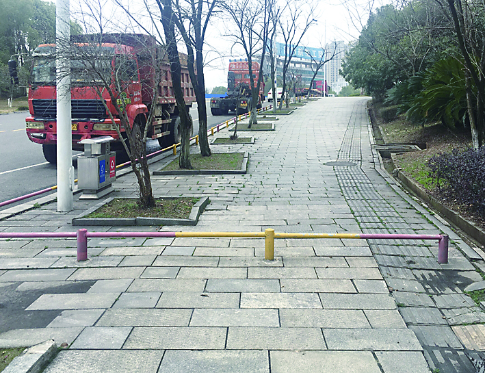 本报讯(株洲晚报融媒体记者/刘平)2月14日,有市民沿天元区奥林匹克路散步时发现,一段上百米长的人行道被栏杆圈住,影响行人通行,存在安全隐患。