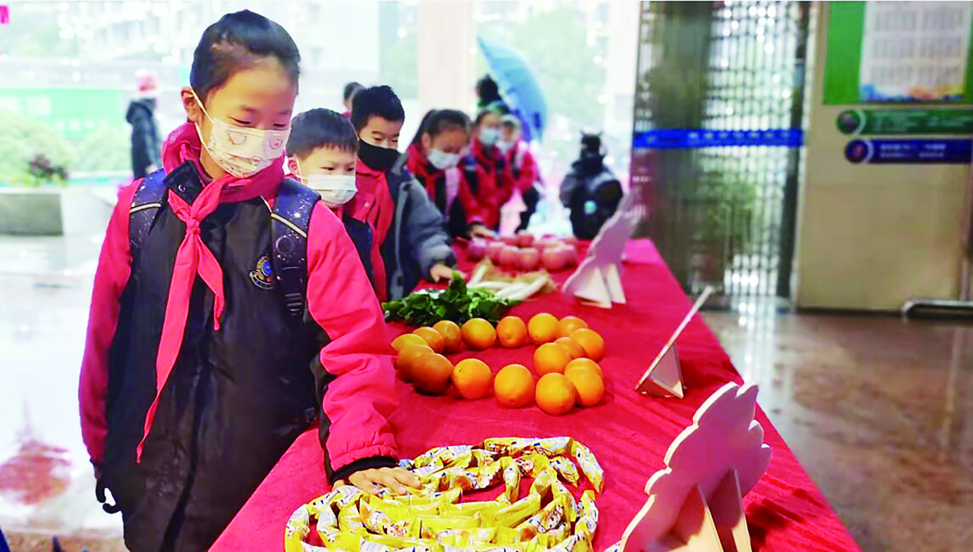 ▲摸一摸,新学期身体棒棒、学业棒棒。银海学校为学生们准备了充满祝福寓意的苹果、棒棒糖等。 记者/孙晓静 通讯员/彭韫娟 摄