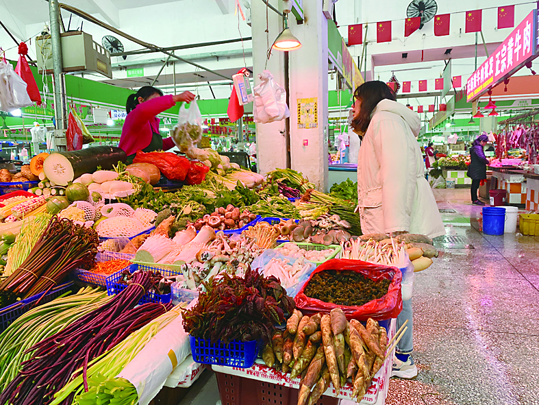 ▲2月16日,天纺农贸市场,一菜摊上的香椿摆在显眼位置。 记者/旷昆红 摄