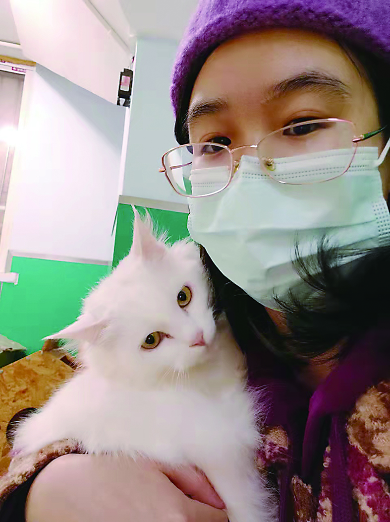 ▲冯婷在帮雇主“撸猫”。 受访者供图