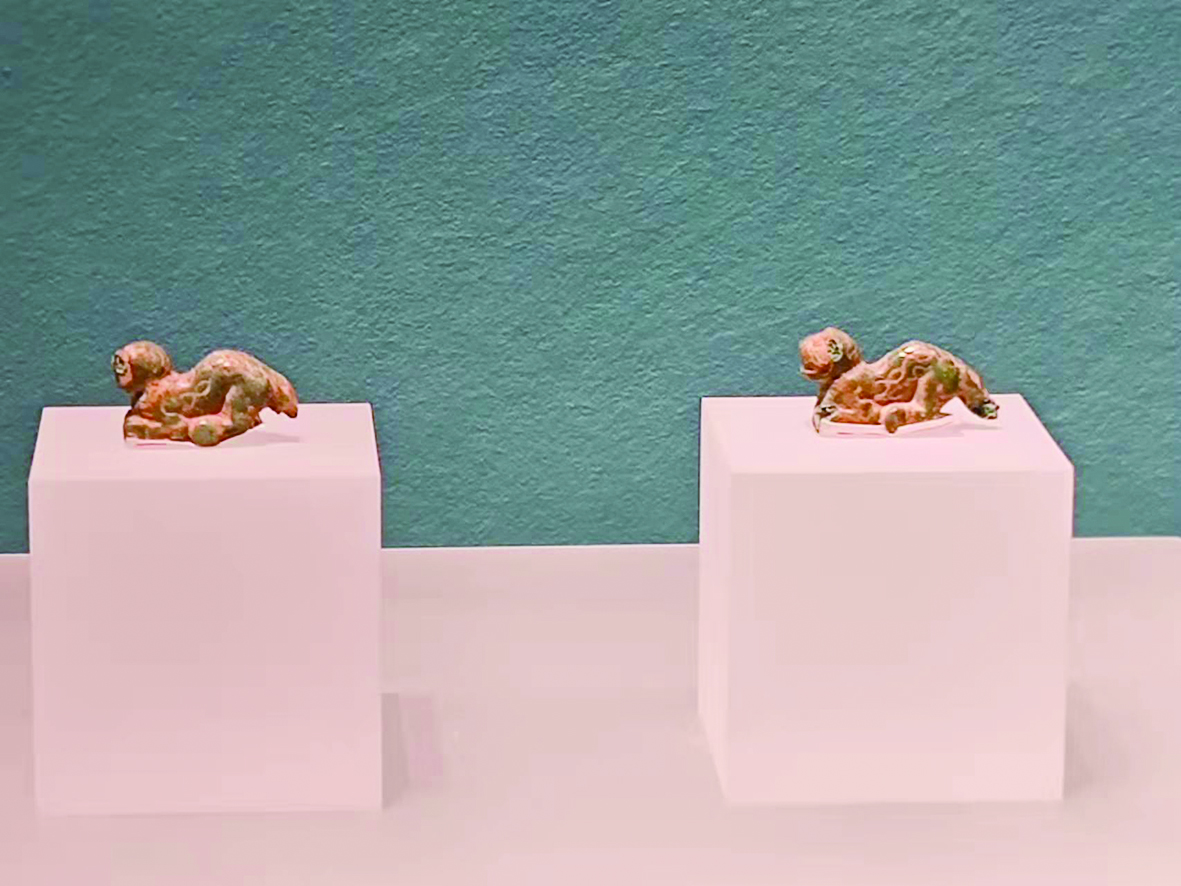 株洲博物馆收藏了一对小铜虎,这对铜虎在2006年出土于攸县鹅公岭,属于东周时期越人所制的一种镇器,或者装饰器。这对铜虎长2.6厘米,高1.4厘米,黄铜质地,小巧玲珑,所制铜虎呈伏姿,昂首垂尾,虎身饰有卷云纹。