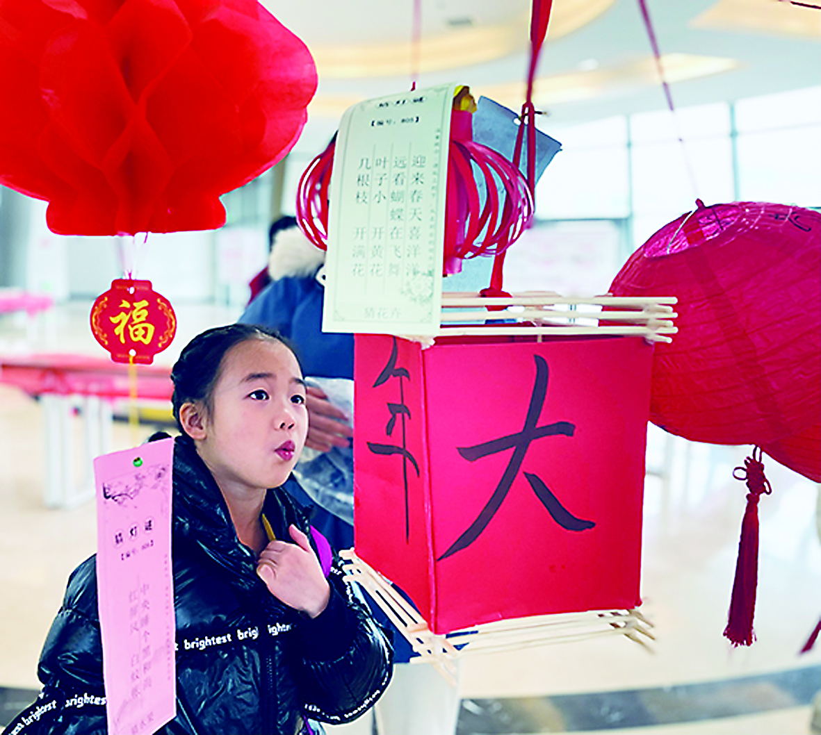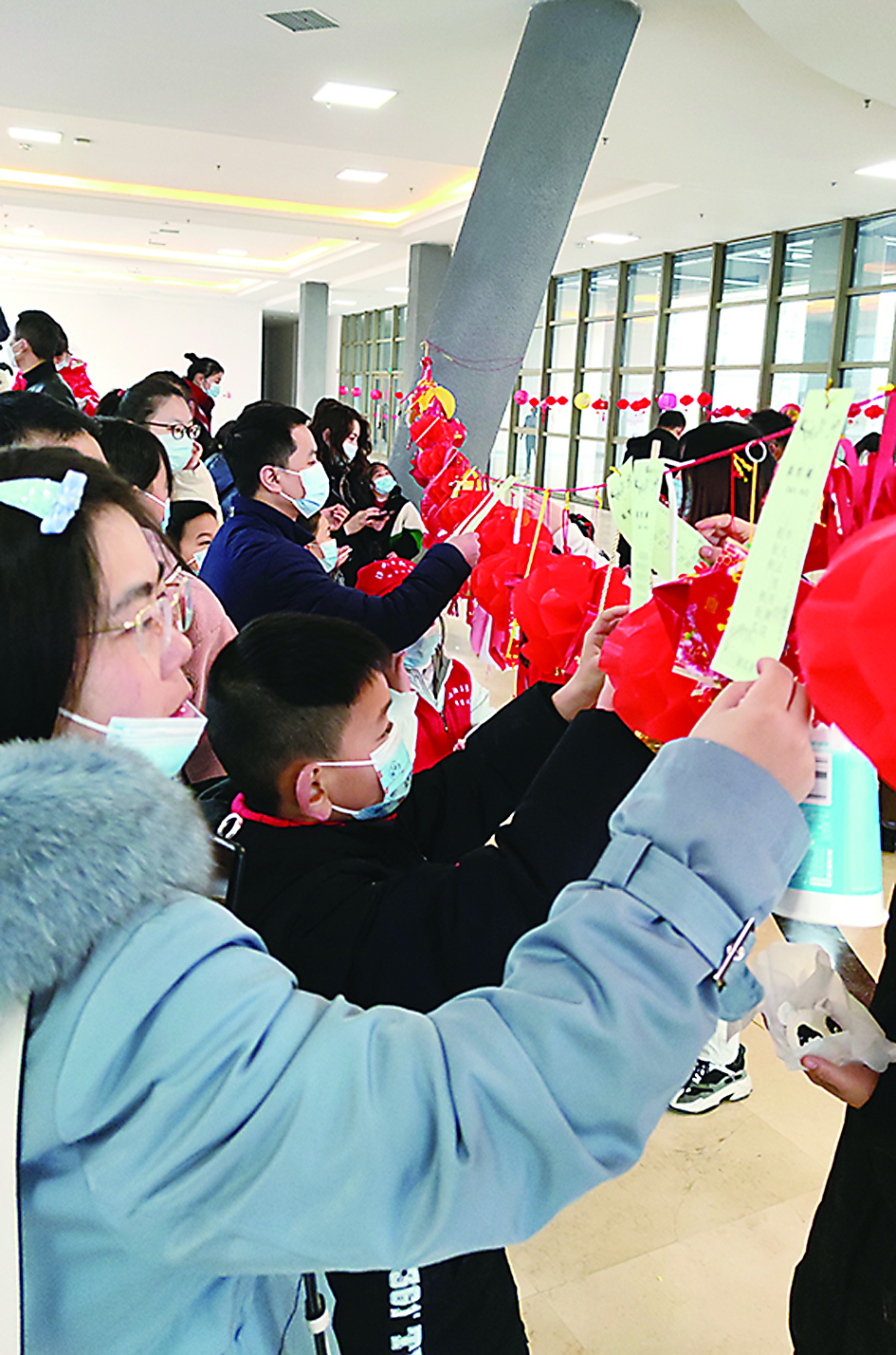 “冰雪融化,打一城市。”“猫狗像什么,打一成语。”“我知道答案。”“这个我猜对啦,可以去抽奖咯!”记者看到,生日会现场挂满了校园记者们亲手做的灯笼,工作人员也为校园记者准备了满满的灯谜“大礼包”,大家在红红的灯笼前埋头思索着灯笼上的灯谜,热烈地和小伙伴们讨论着谜底。