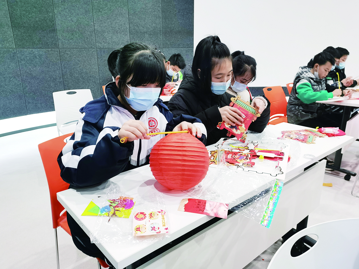 ▲校园记者在制作花灯。记者/刘文 摄